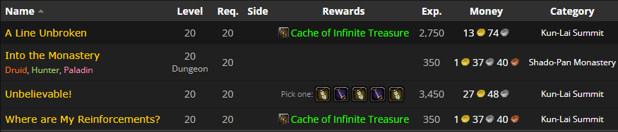 Quest ID# 31031 is supposedly only for Paladin, Hunter, or Druid. I can accept it as a Shaman.