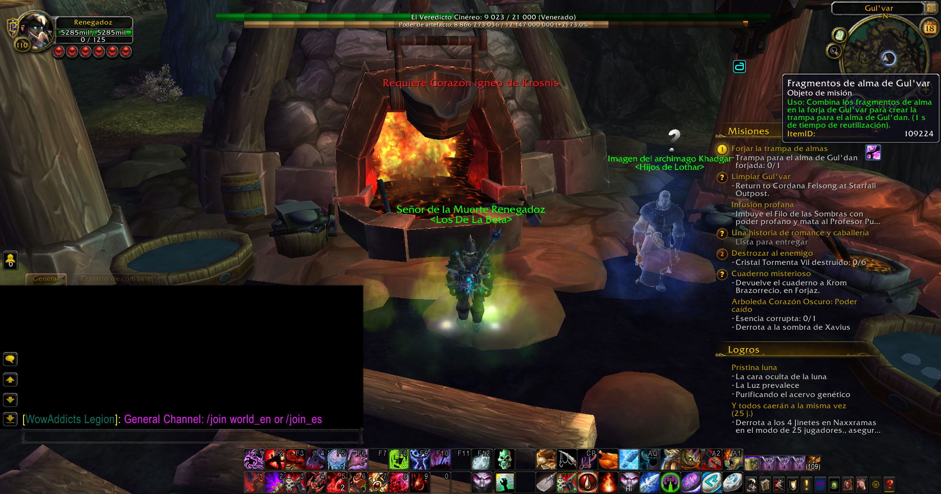Falta el objeto corazon igneo de krosnis para poder hacer la quest Forging the Soul Trap, al dar click en Gul'var Soul Shards lo pide.