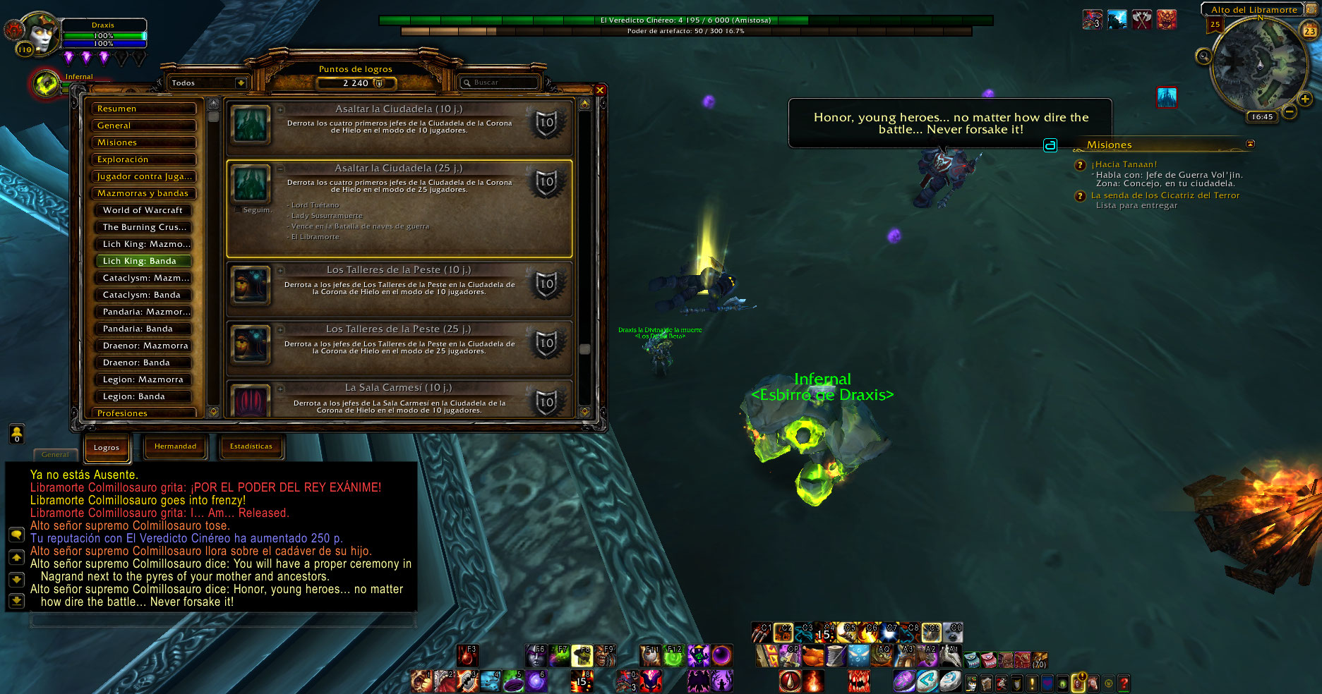P.D.: Al enfrentarme a Deathbringer Saurfang tampoco se marca en el logro Storming the Citadel (entre con la bruja para sacar la captura de esto).