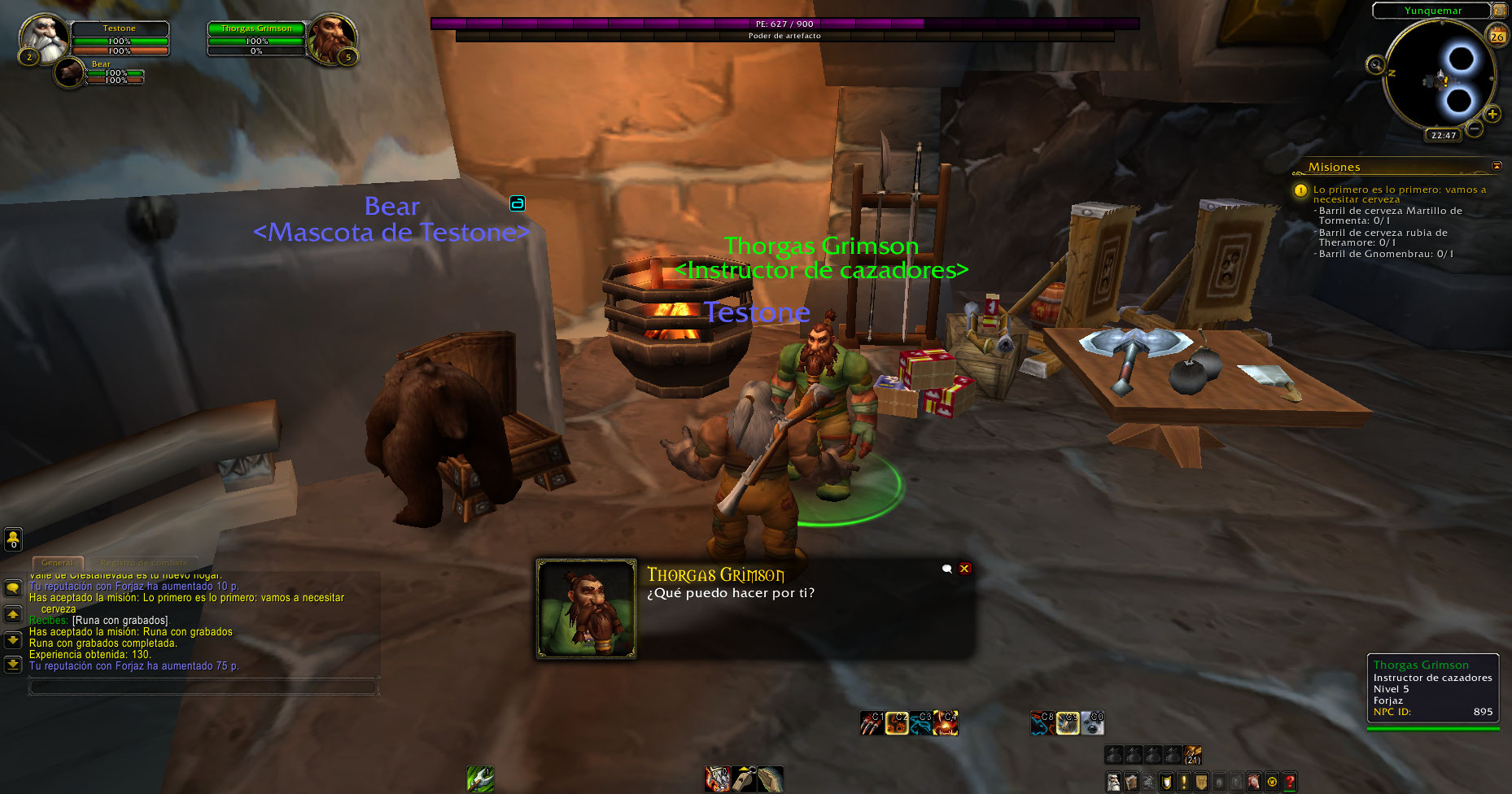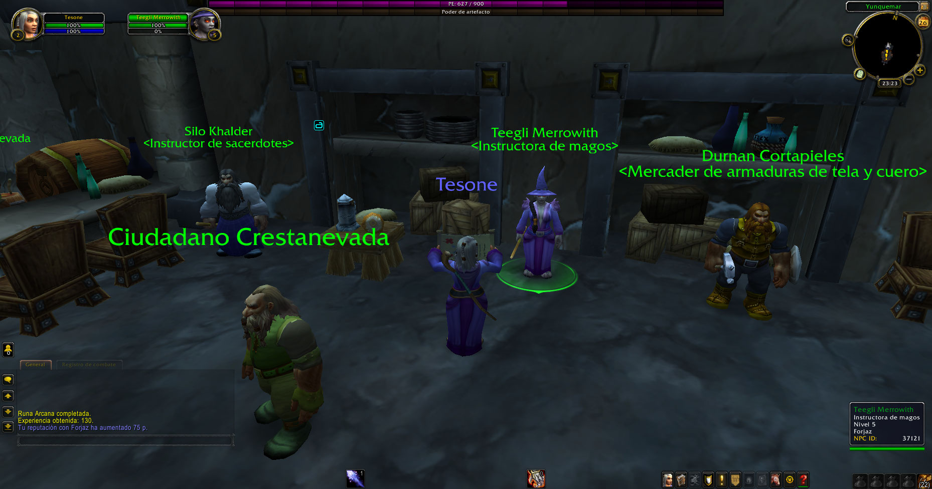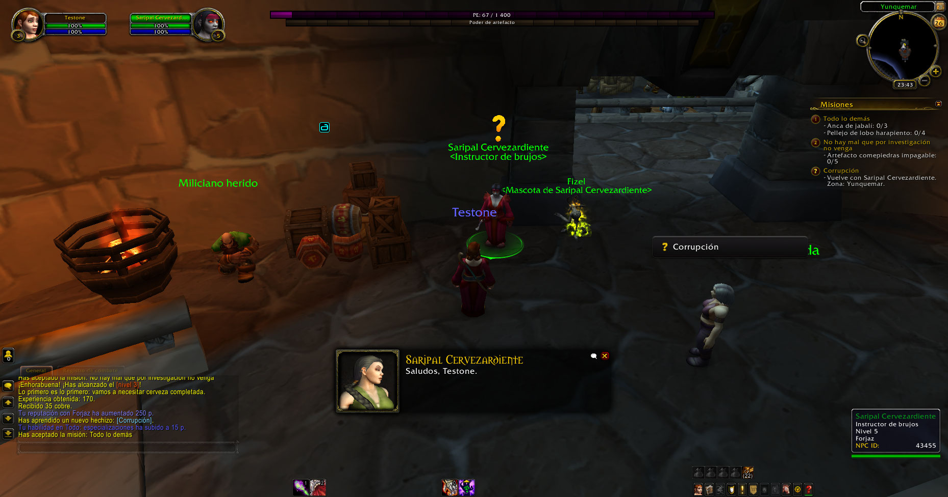 https://www.wowhead.com/quest=3108/etched-rune (El NPC no tenía la misión de subir a nivel 3 y practicar un poder)