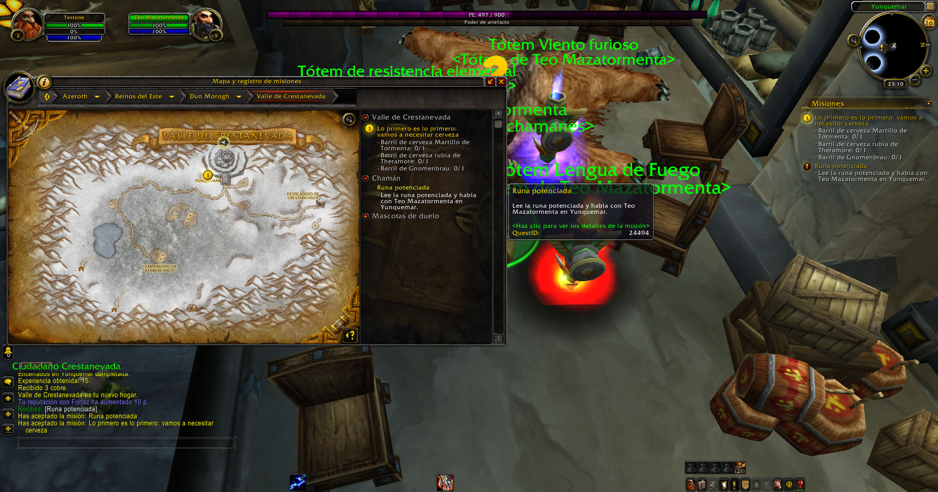 https://www.wowhead.com/quest=3109/encrypted-rune Al llegar a nivel 3 no marca el 1er requerimiento y tampoco el 2do pese a que se usa Dispatch