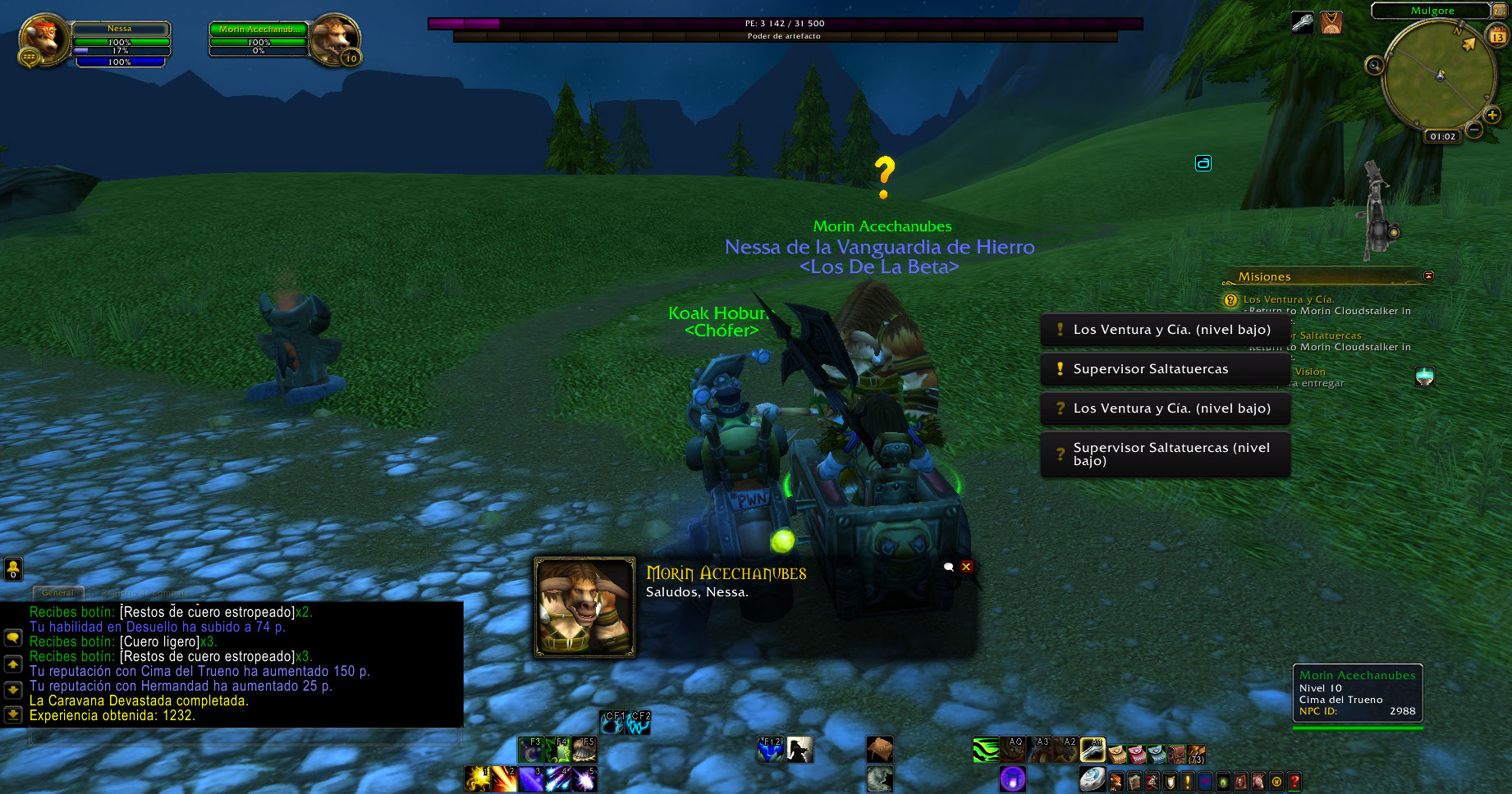 El NPC Morin Cloudstalker tiene duplicada las misiones Supervisor Fizsprocket y The Venture Co., la primera vex al interactuar con el por completar la misión Morin Cloudstalker se ven las misiones ya mencionadas y también The Ravaged Caravan, pero al entregar las misiones aparecen las dos duplicadas.