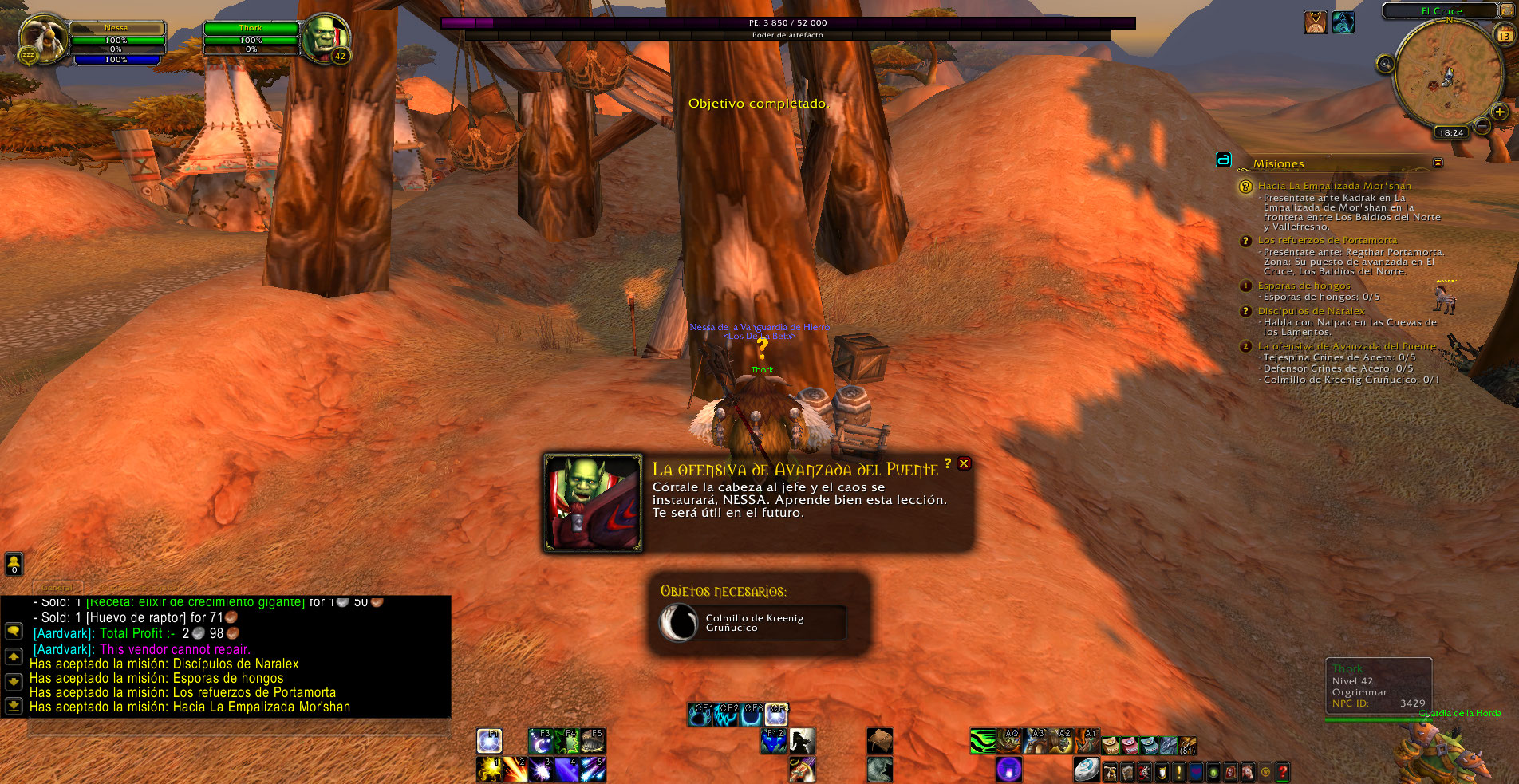 Esta misión se auto completa ni bien se acepta y la da el NPC Thork cuando según WoWhead la termina y quien la empieza es el NPC Kargal Battlescar, aunque en el enlace que adjunto se ve algo distinto.