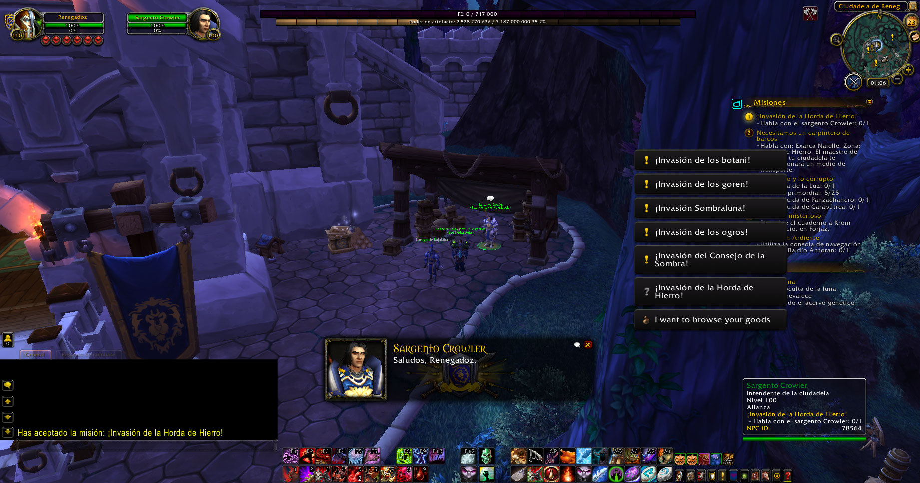 https://www.wowhead.com/es/npc=78564/sargento-crowler https://www.wowhead.com/quest=36655/iron-horde-invasion https://www.youtube.com/watch?v=mq58_uEnw-Y