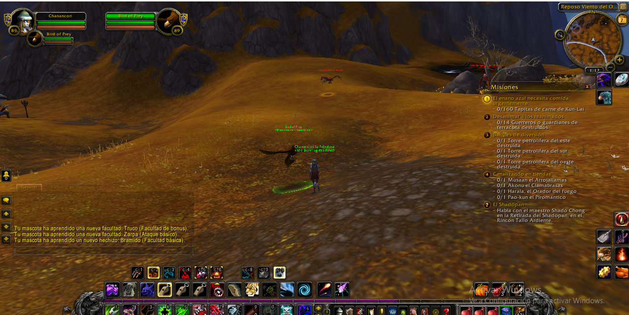 el problema esta en cada criatura domesticada que trato de tener, hasta el momento solo obtuve 2 la criatura por defecto de los elfos del vacio y un gorila pero como te puedo mostrar en la imagen esta ave de presa que es de una mision tiene conjunto de habilidades que no tiene una alimaña es una criatura domable pero asi como los escorpiones los canes viles de terrallende tampoco tiene la habilidad matar como se ve en la barra de habilidades.