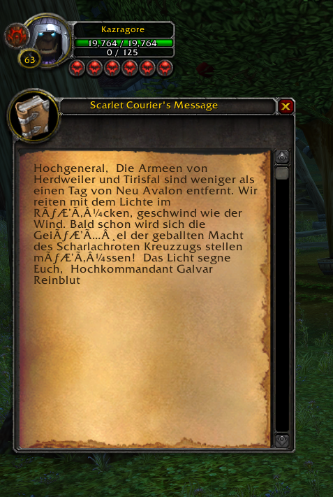 FS#1204 - Scarlet Courier's Message is in a different language with other symbols