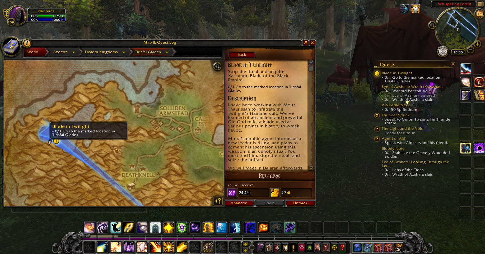 I can pick up the quest from Alonsus Faol in the Priest class hall, but once in the Tirisfal Glades, the twilight sorcerers are not there,